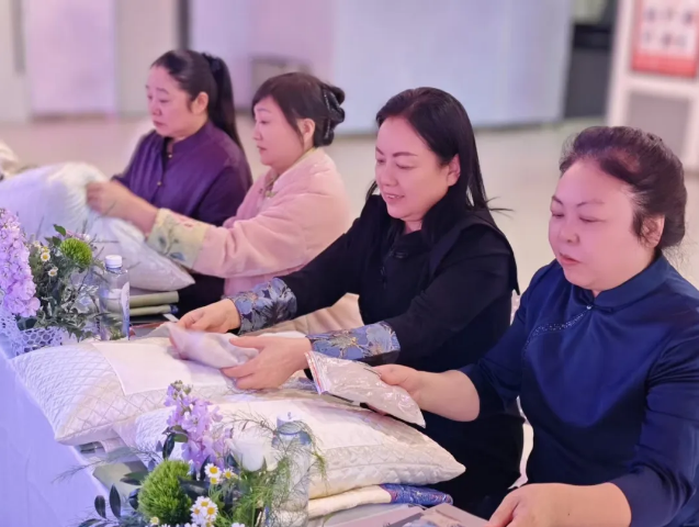 在“闻香识材”互动品鉴环节,女职工们在闫老师的引导下,通过嗅觉辨识香材,近距离感受传统制香文化的独特魅力。随后的“巧手制香”实操体验将活动推向高潮,大家亲自动手,在老师指导下选材、填充,将中草药精心制成养生药枕,在手工制作中体悟非遗技艺的精妙。