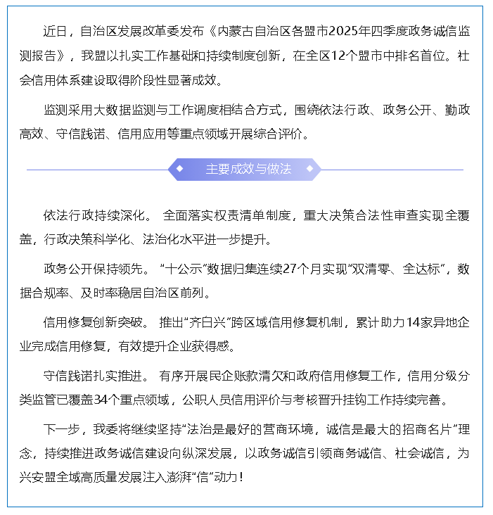 兴安盟社会信用体系工作实现自治区季度监测“开门红”